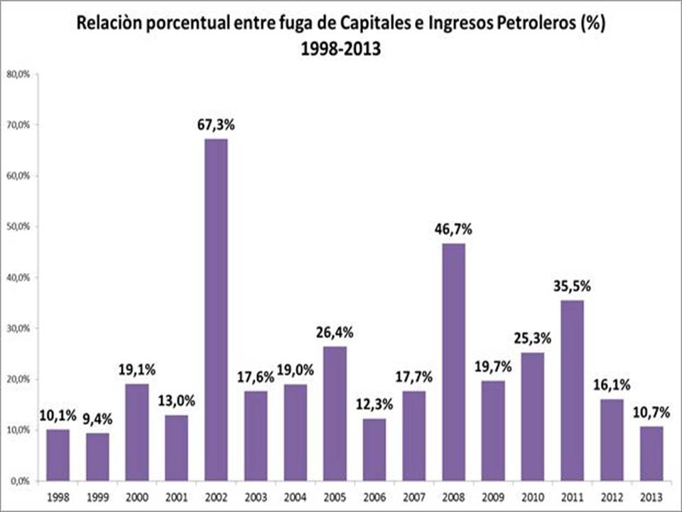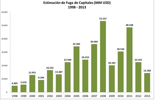 Marea Socialista ha publicado en aporrea.org un nuevo trabajo de investigación en el que estudian la fuga de divisas al exterior entre 1998 y 2013. Las estimaciones, basadas en información que han hecho pública las instituciones del Estado, artículos de prensa y cálculos recopilados por un grupo de voluntarios militantes del Psuv, son alarmantes.