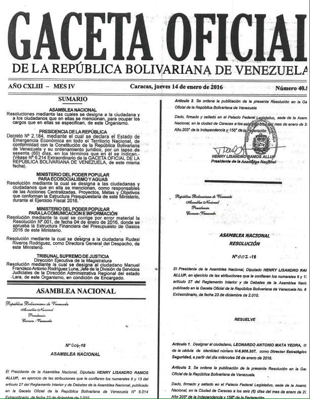 La publicación oficial refiere a la Gaceta Extraordinaria 6.214 de la misma fecha en la que estarían los detalles del decreto. Sin embargo, hasta ahora ninguna de las dos han sido publicadas sino anunciadas desde la Agencia Venezolana de Noticias y de la cadena de televisión del Estado VTV.